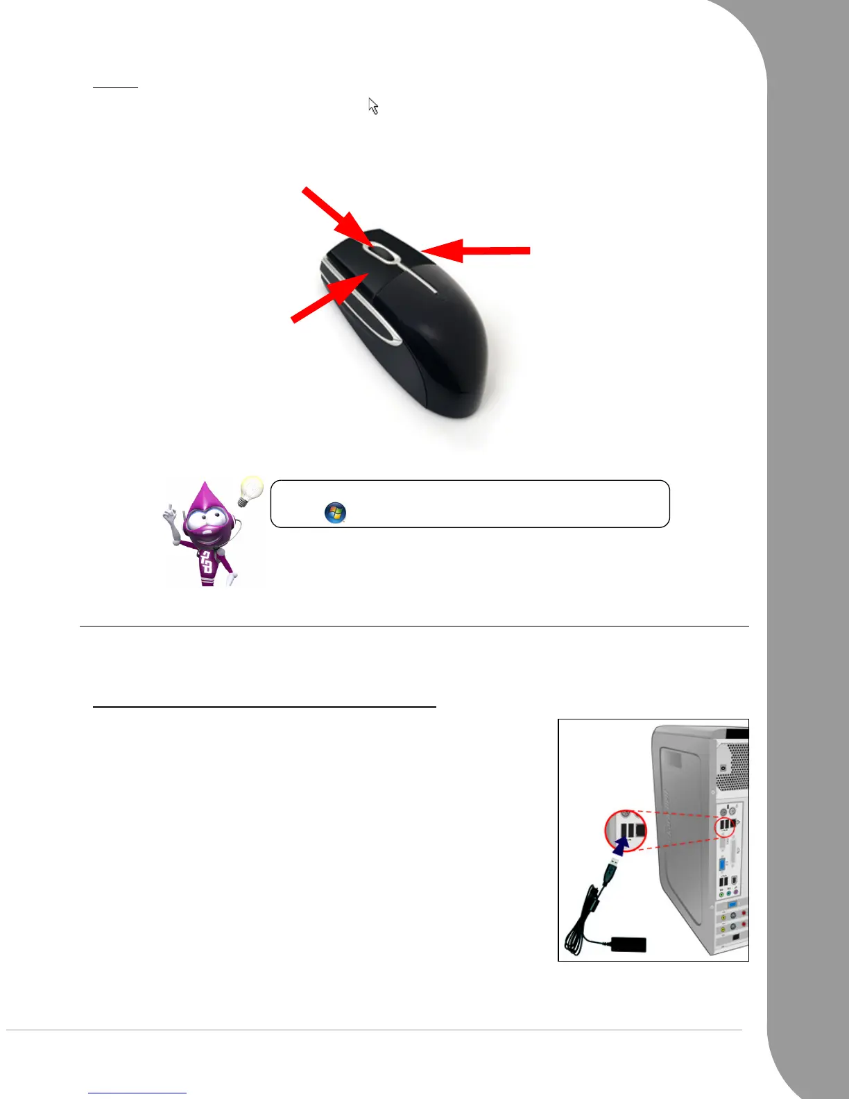 move the mouse over a hard and flat surface, the pointer will follow this movement. Click one of the buttons