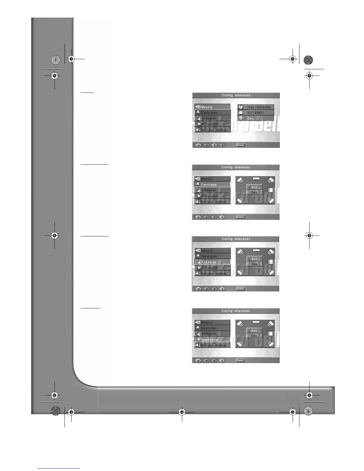 Active (Act.) o desactive (Des.) el altavoz central.