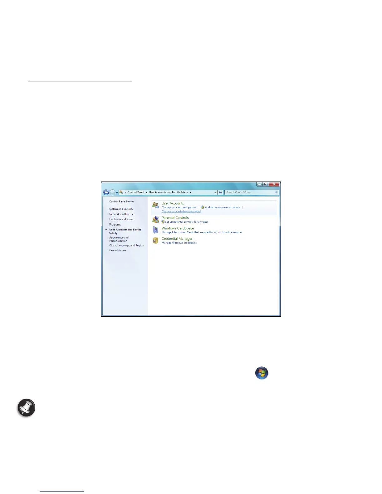 User Accounts and Family Safety > User Accounts.