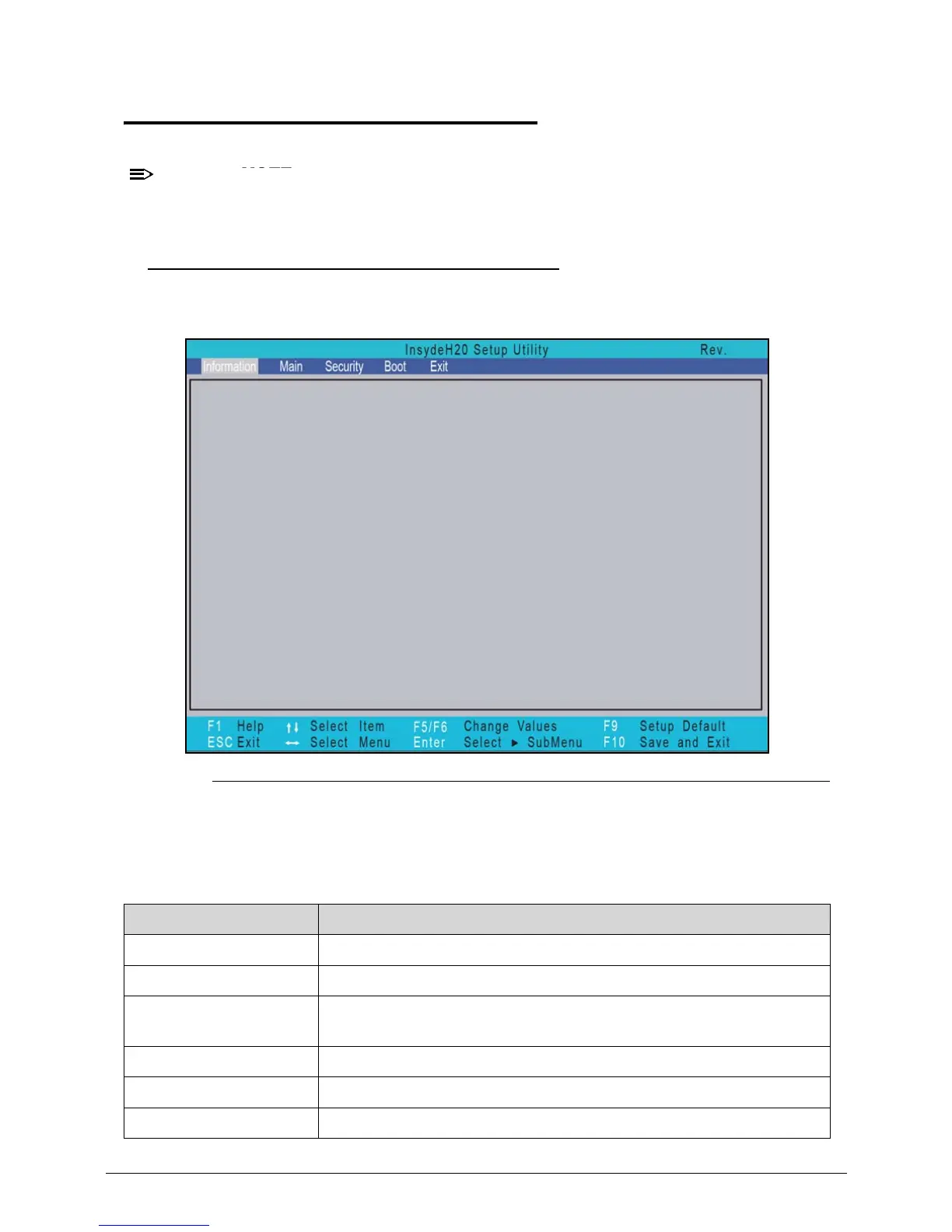 The following is a description of the tabs found on the InsydeH20 BIOS Setup Utility screen: