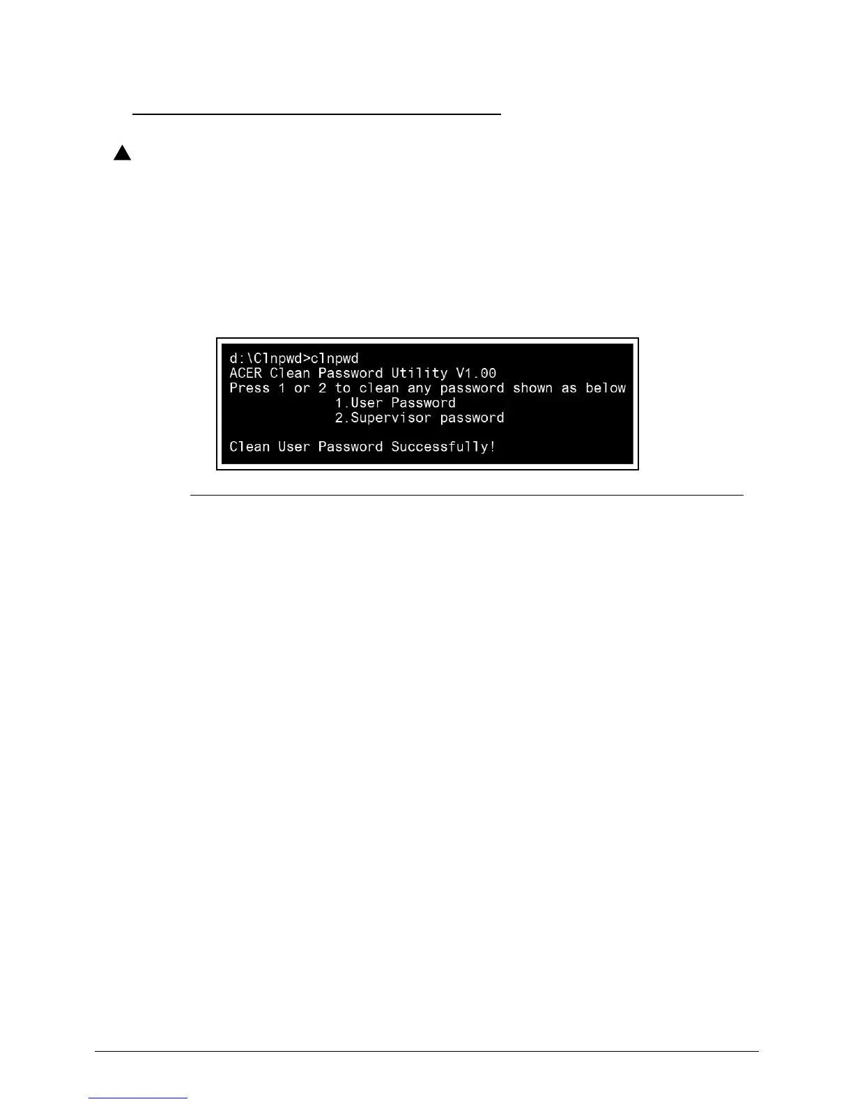 To clean the User or Supervisor passwords, perform the following steps: