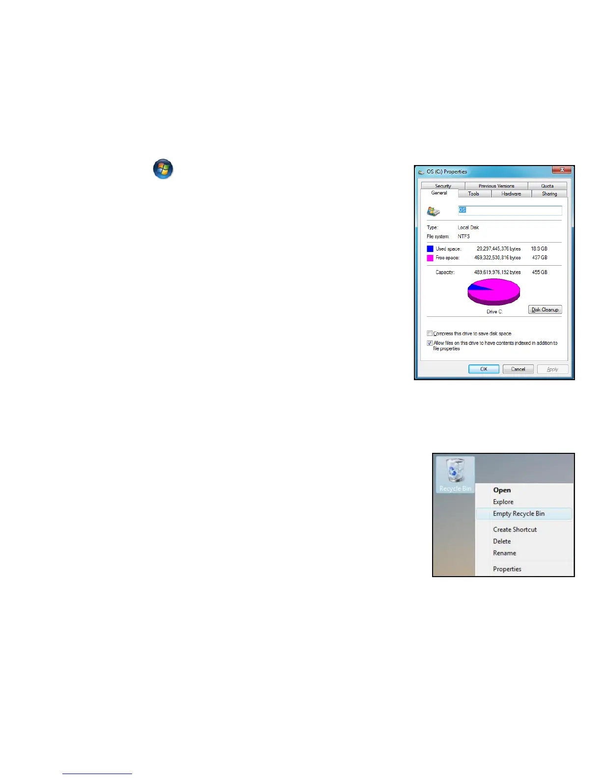1. Empty the Recycle Bin: When you delete a file
