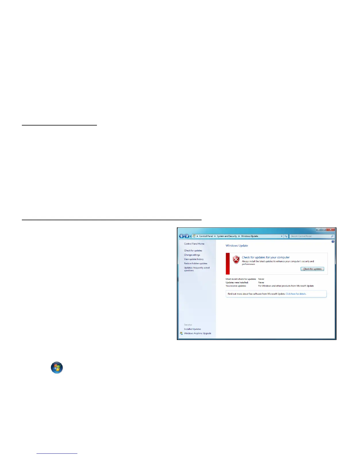 • Start > Control Panel > System and Security > Windows Update.