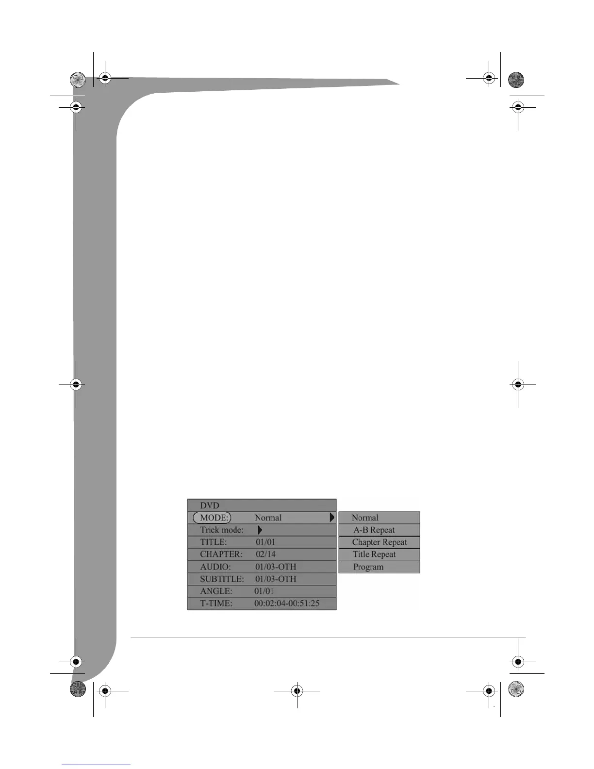 •Use the Up/Down arrow buttons to highlight the A-B REPEAT item, press the Select button to mark the