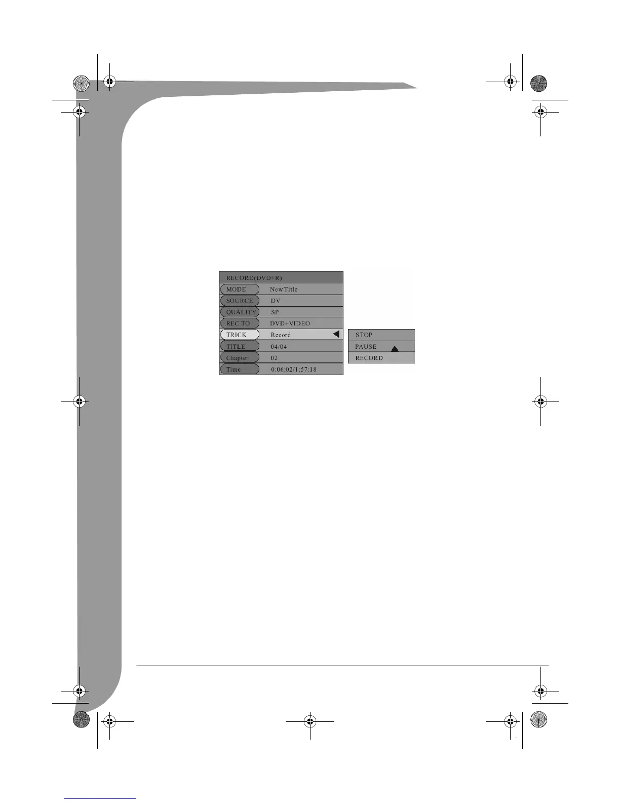 the corresponding value to complete the operations such as RECORD , PAUSE and STOP.