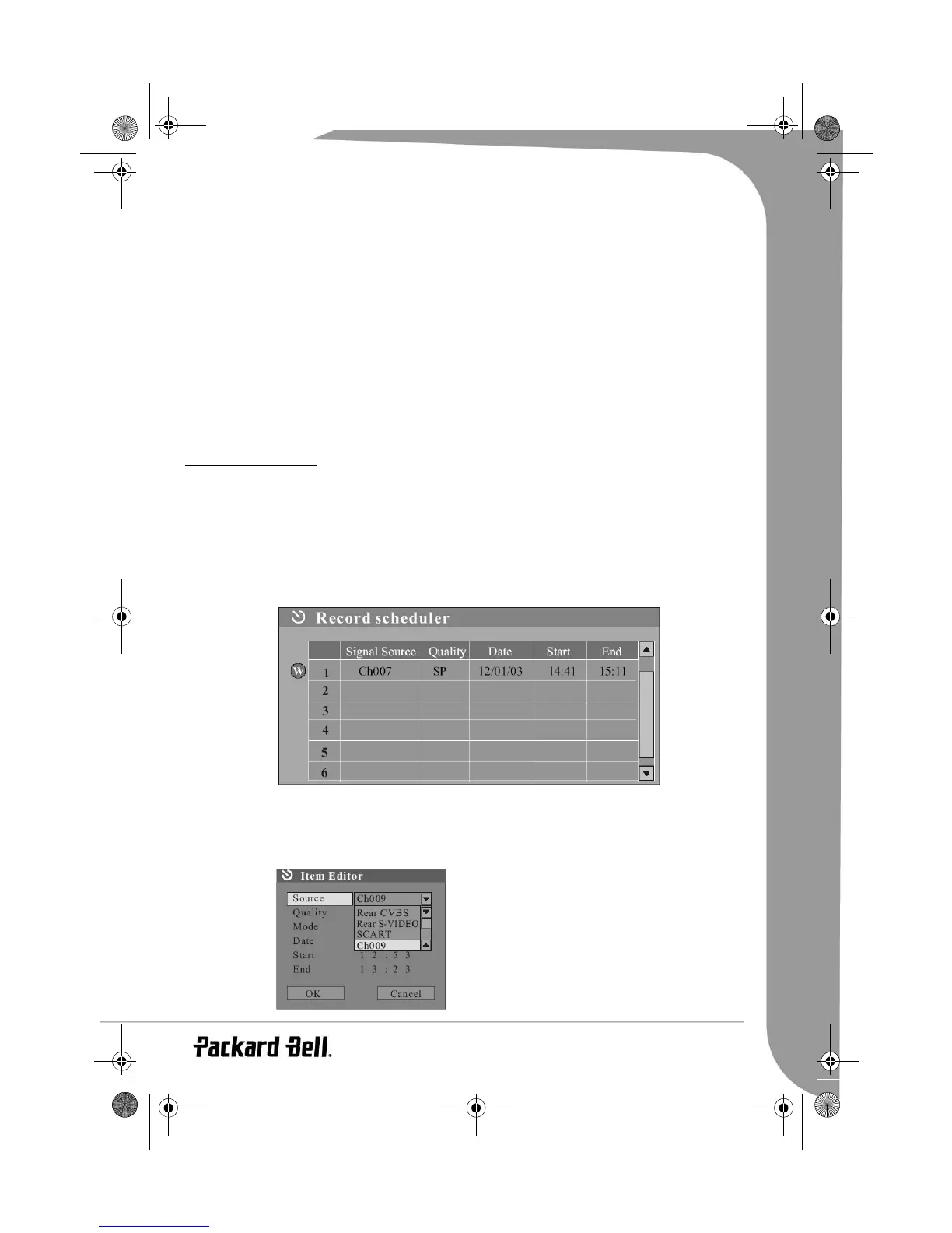 records in this menu. Each record represents a recording schedule.