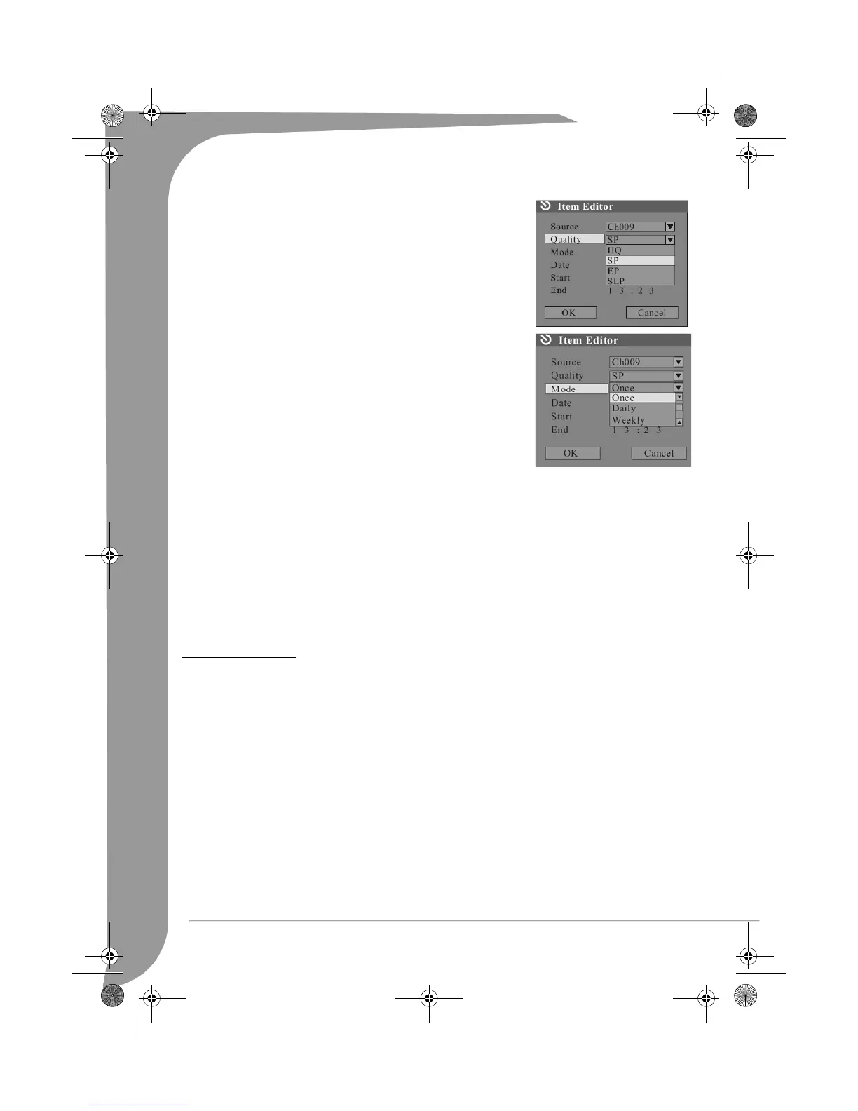 4. Set the recording quality. In the Item Editor dialog box, use the Up/