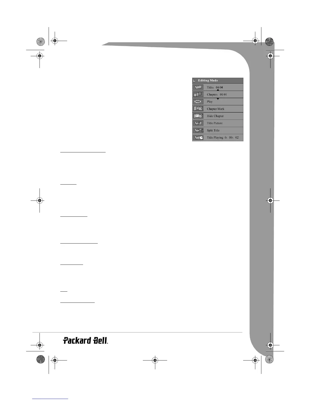 The chapter editing control bar menu is as shown in the following chart and
