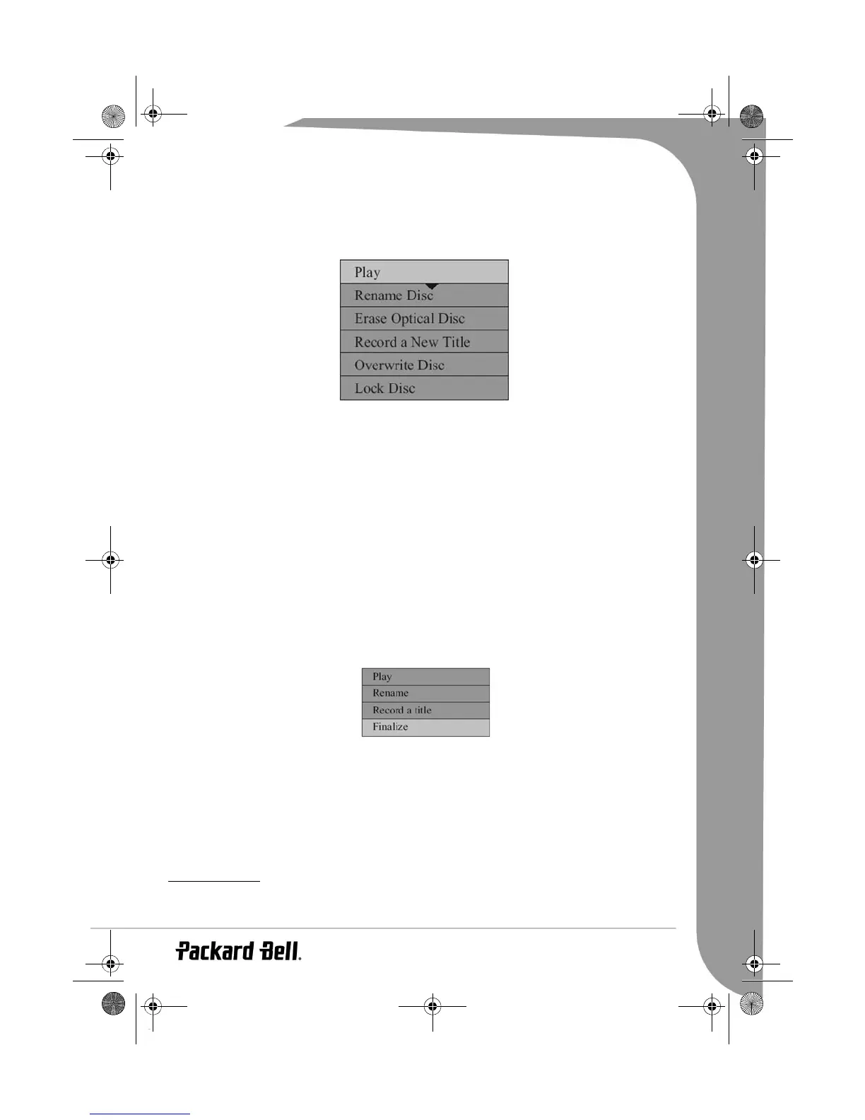 • Lock disc: Lock the current disc to protect the data on it. The locked disc cannot be erased or recorded