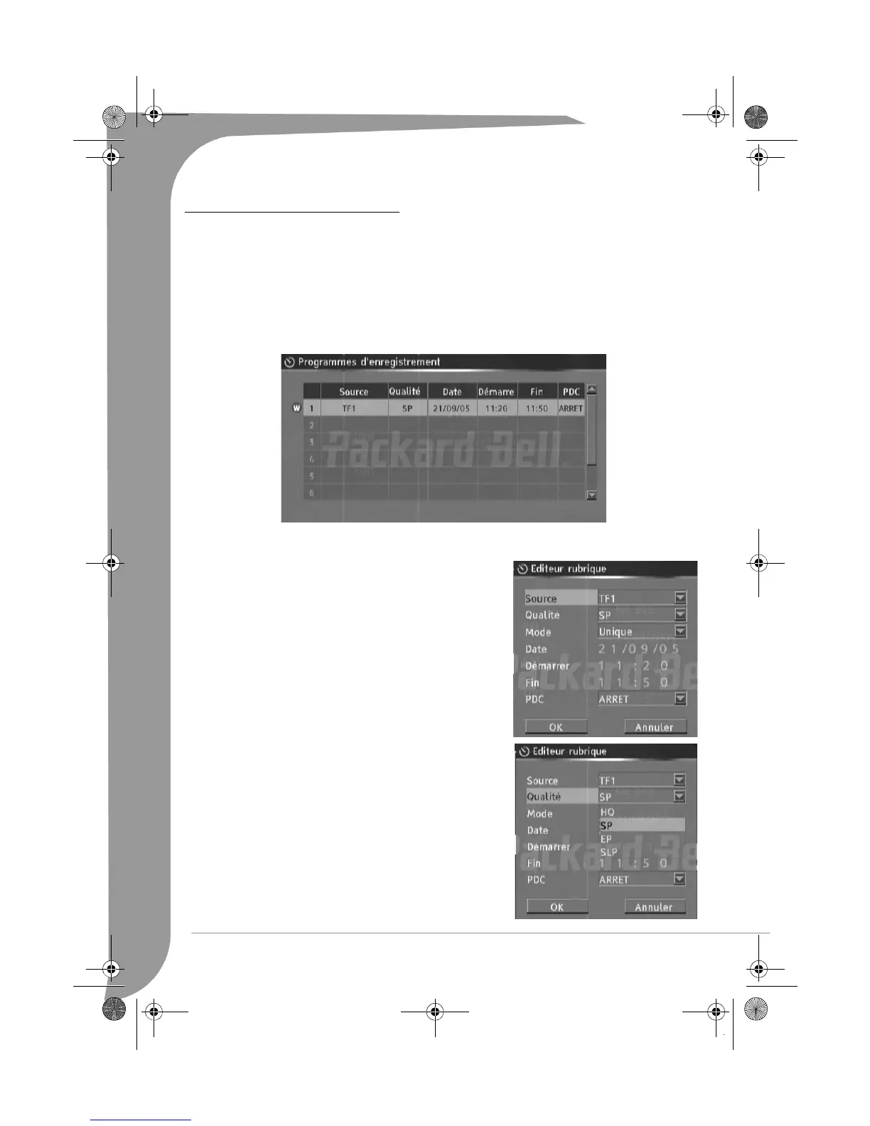 programmé, définissez un programme d'enregistrement puis configurez le système conformément aux