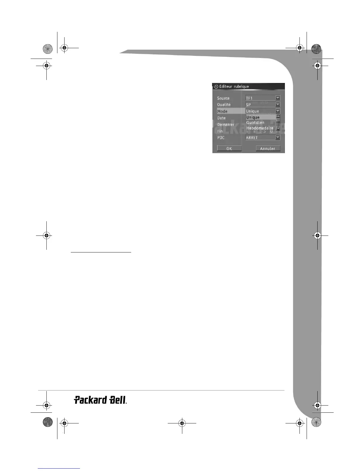 enregistrements prévus. Sélectionnez n'importe quel élément du programme d'enregistrement et appuyez sur