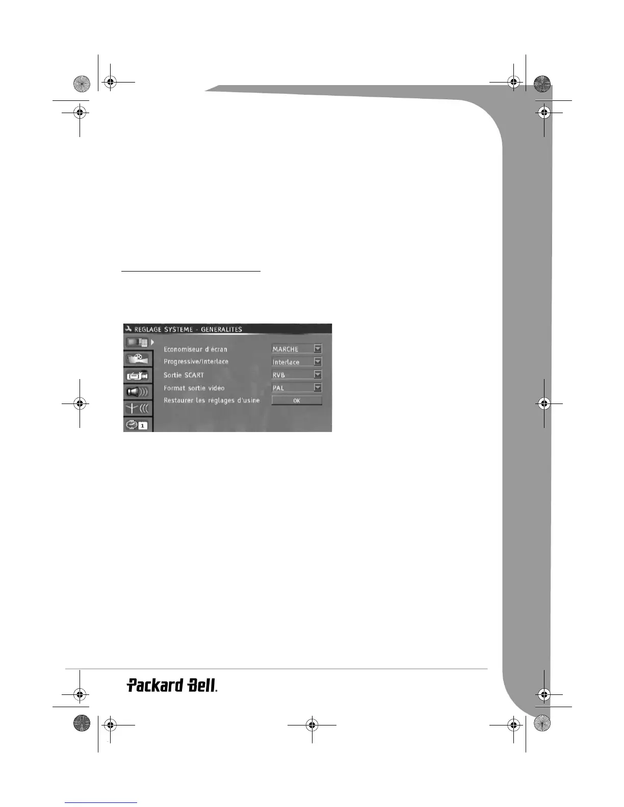 Réglage système s'affiche en haut de l'OSD, tel que représenté ci-dessous.
