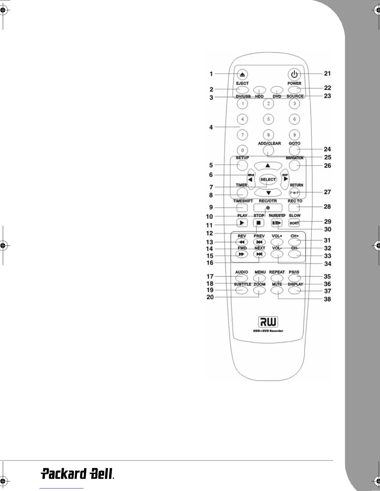 30. Knop PAUZE/STEP