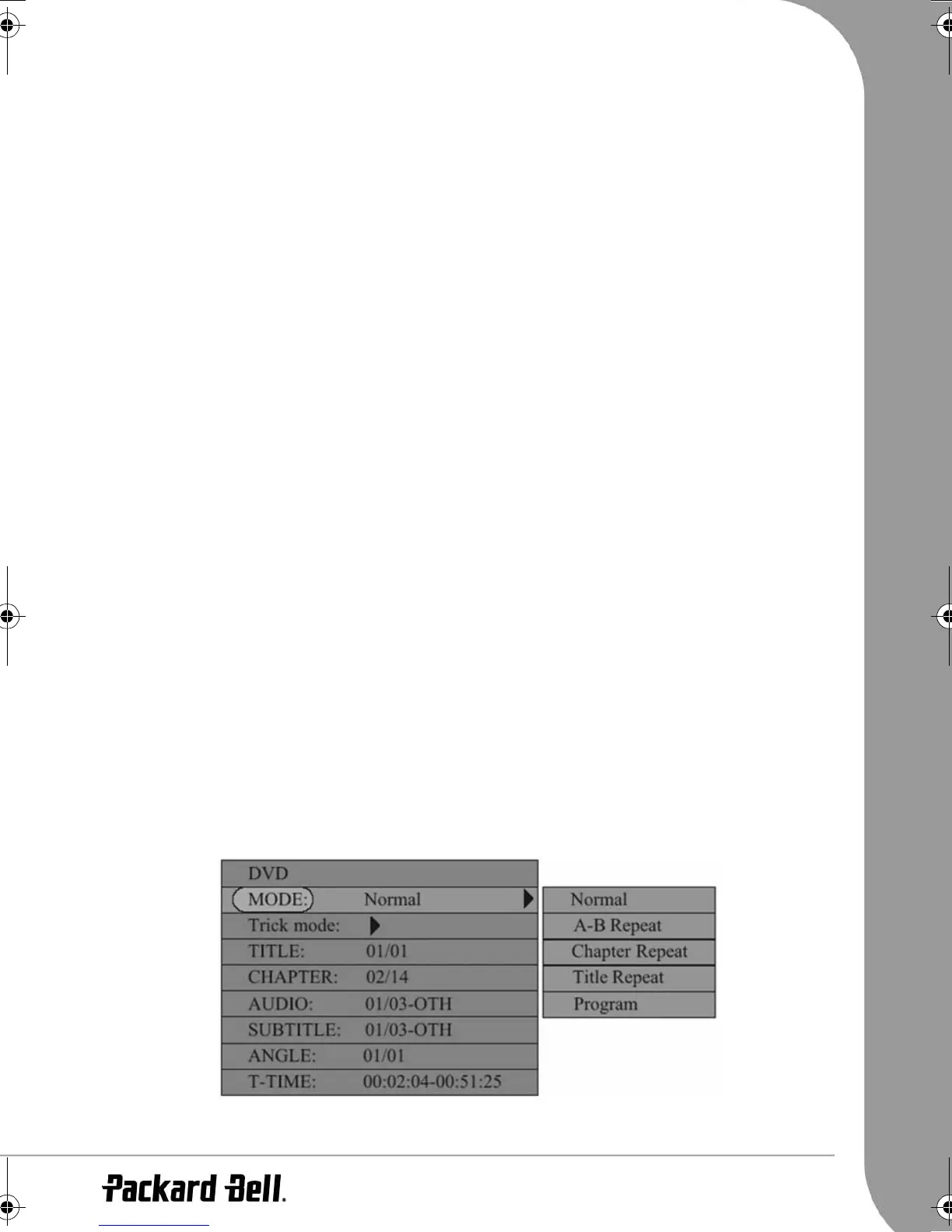 •Use the Up/Down arrow buttons to highlight the A-B REPEAT item, press the Select button to mark the