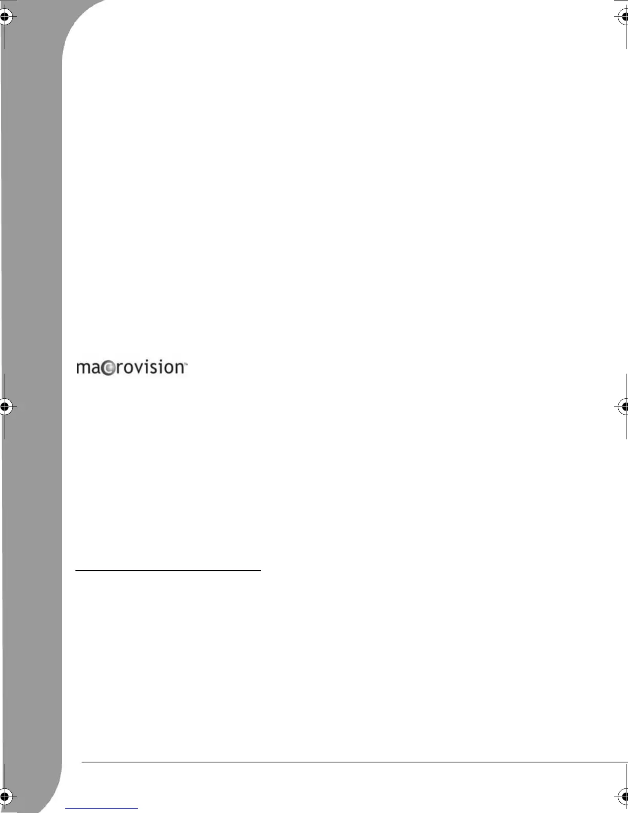 Macrovision Corporation nécessite l'accord de Macrovision. Elle est exclusivement destinée aux utilisations