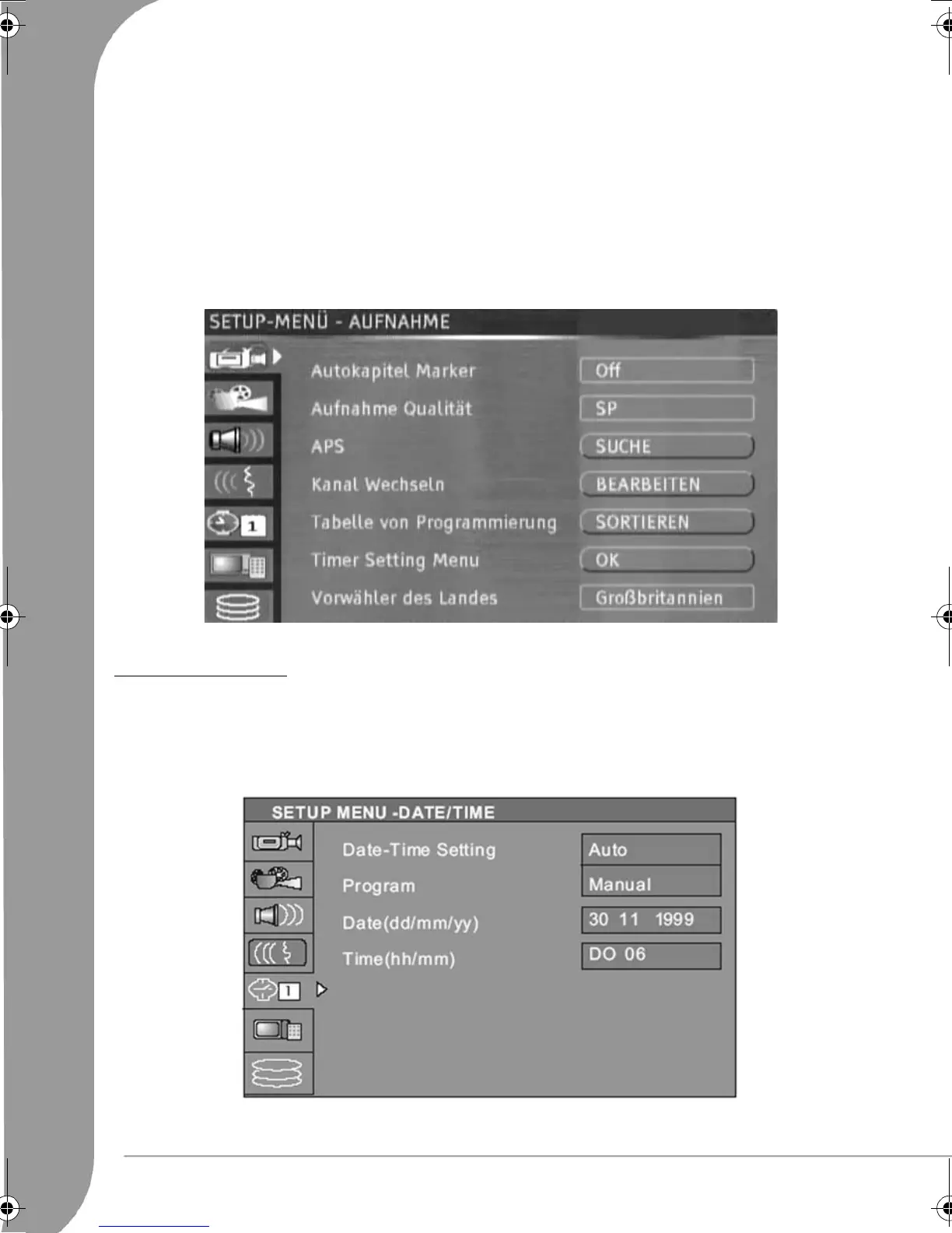 Sie können den Recorder so einstellen, dass er in jedes aufgezeichnete Programm automatisch Kapitelmarker