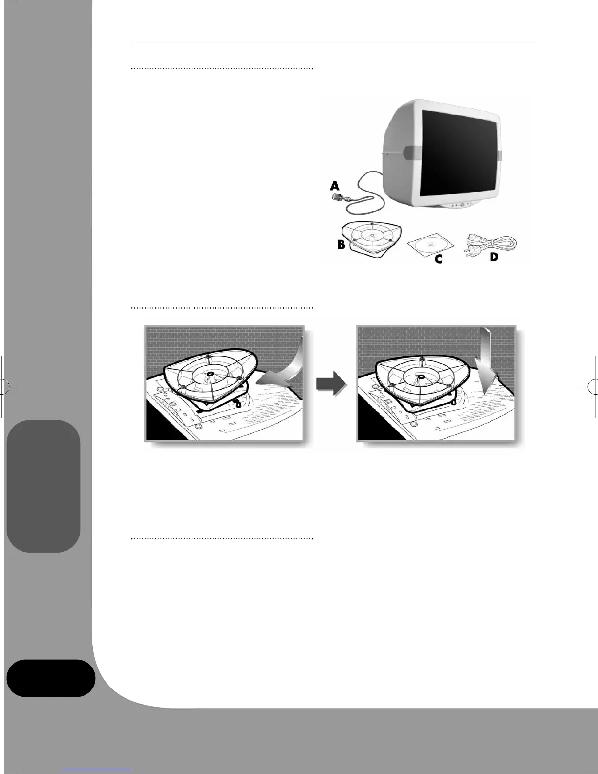 jes aan die voet in de gaatjes in de monitorbehuizing vallen.