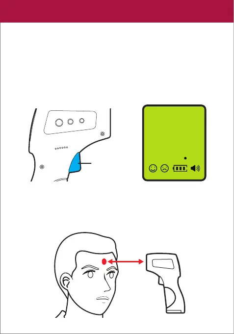 1. Press the TRIGGER to turn the thermometer ON. The LCD