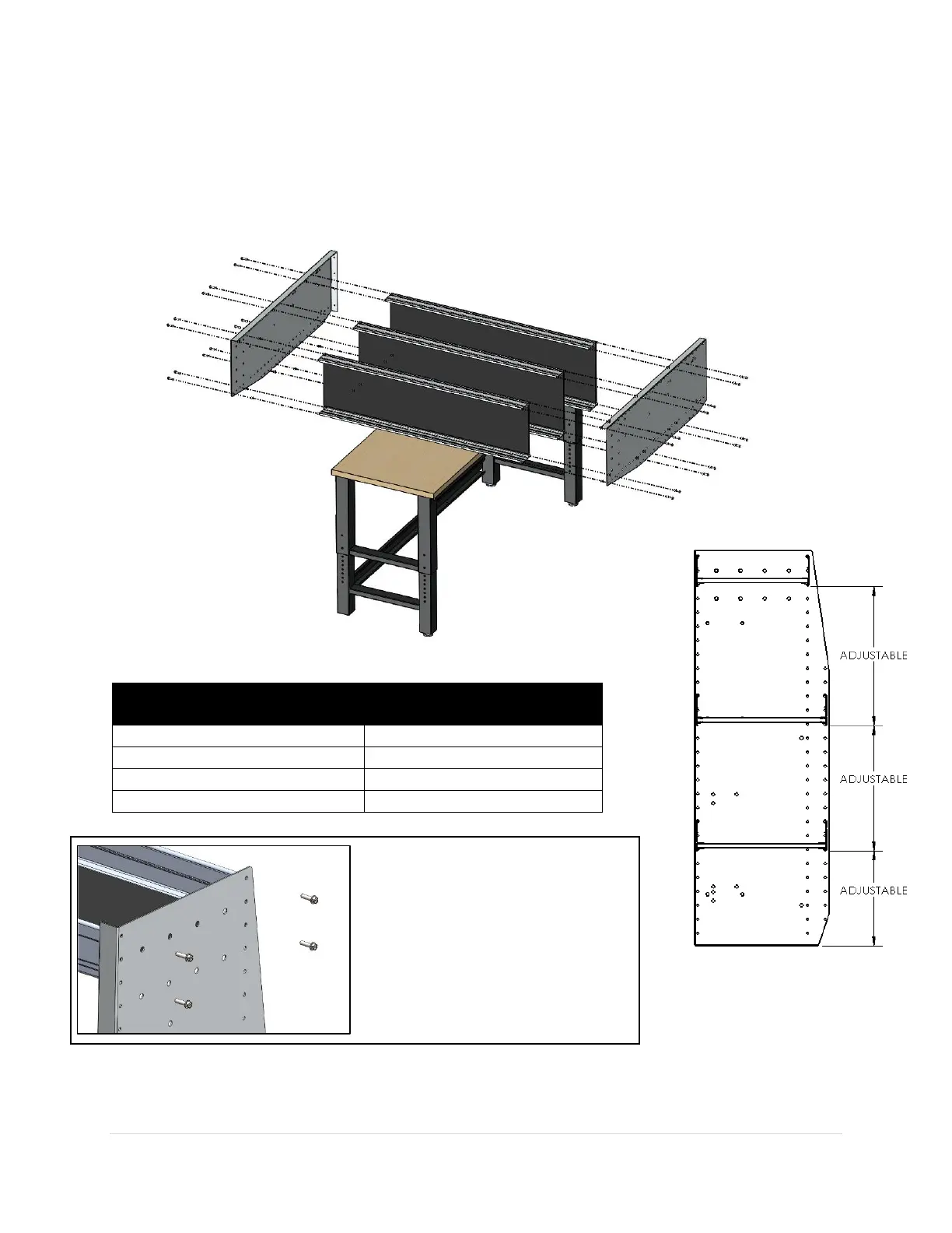 Position shelf trays on a work bench. Fasten the End Panels to the Shelf Trays using the