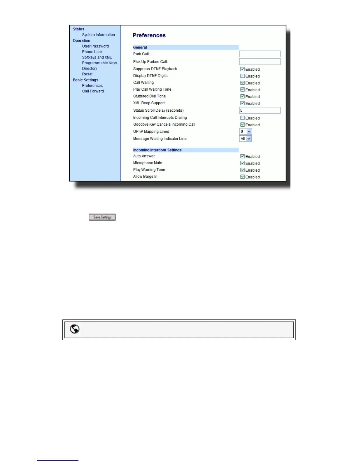 message on the phone. You can specify this setting in the Status Scroll Delay