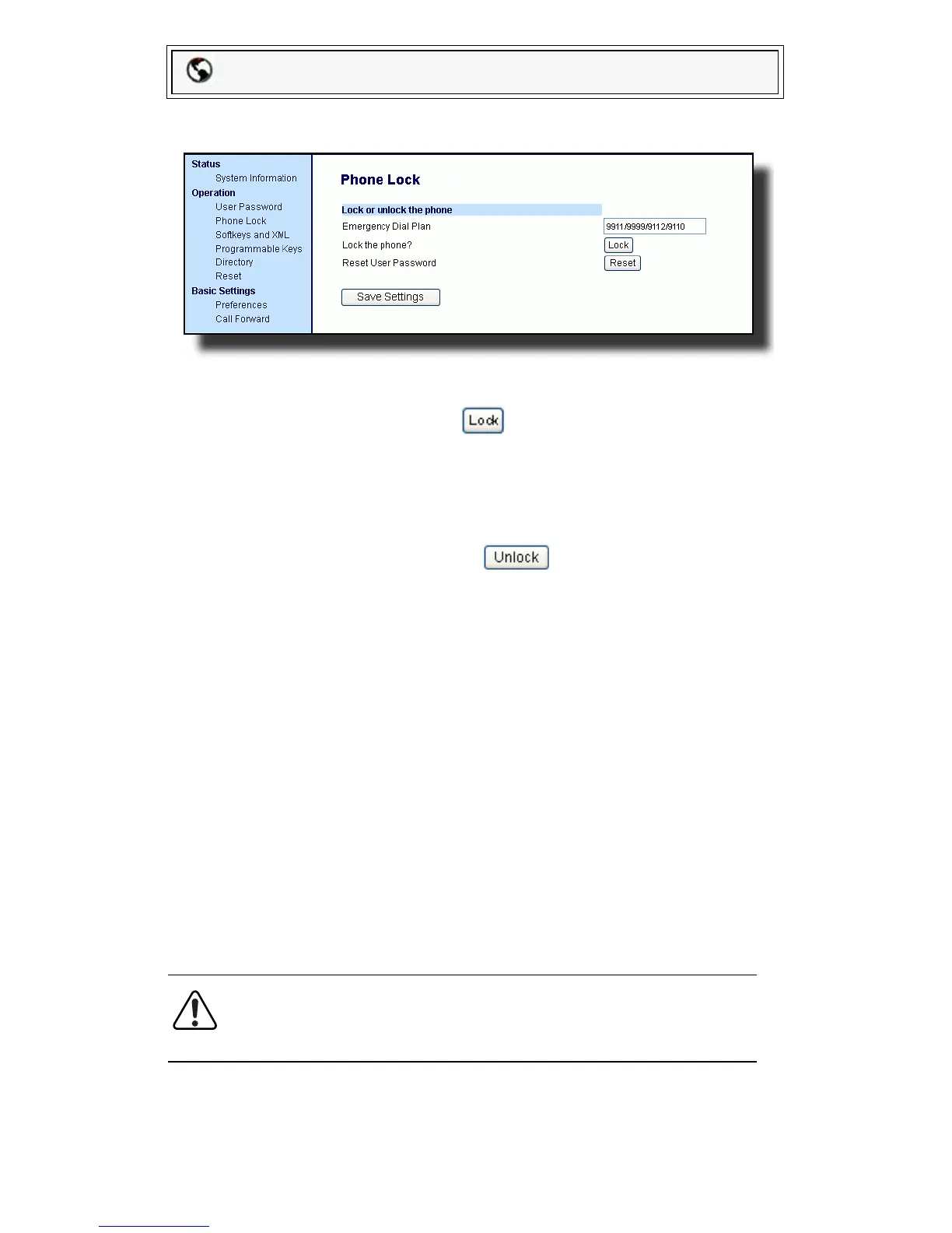 1. Click on Operation->Phone Lock.