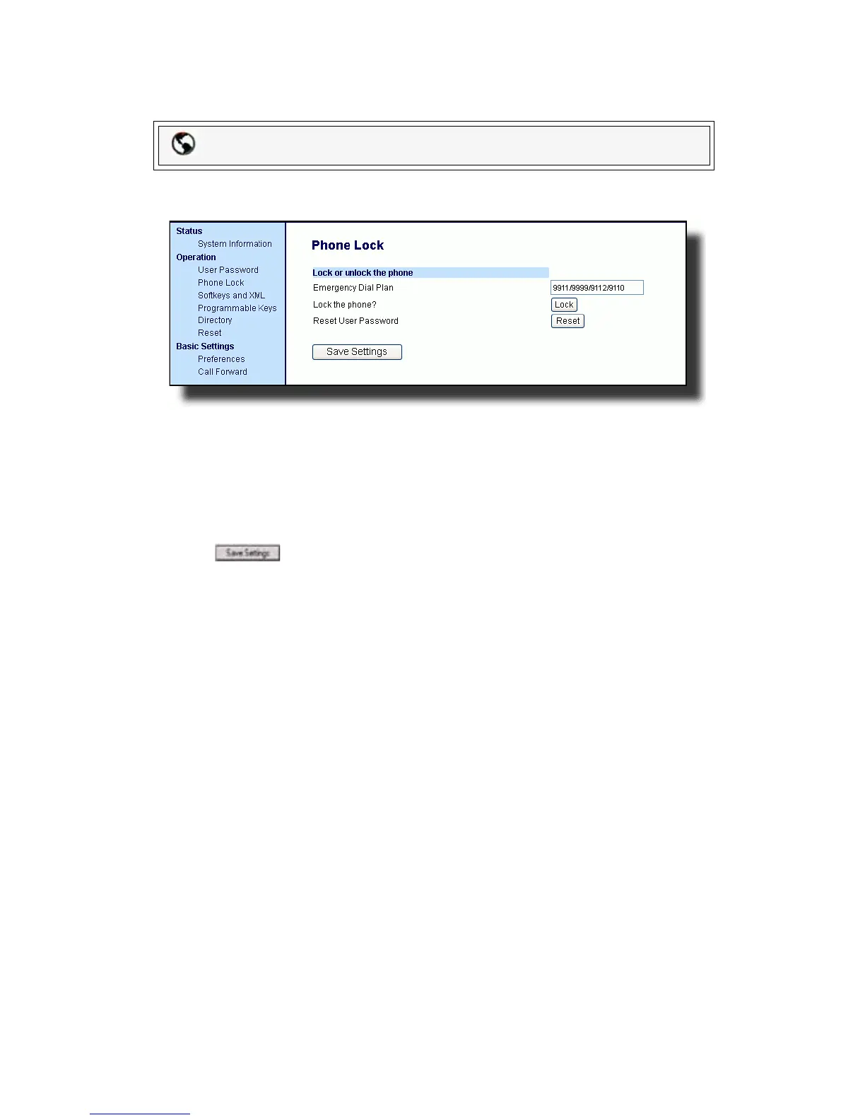 1. Click on Operation->Phone Lock.