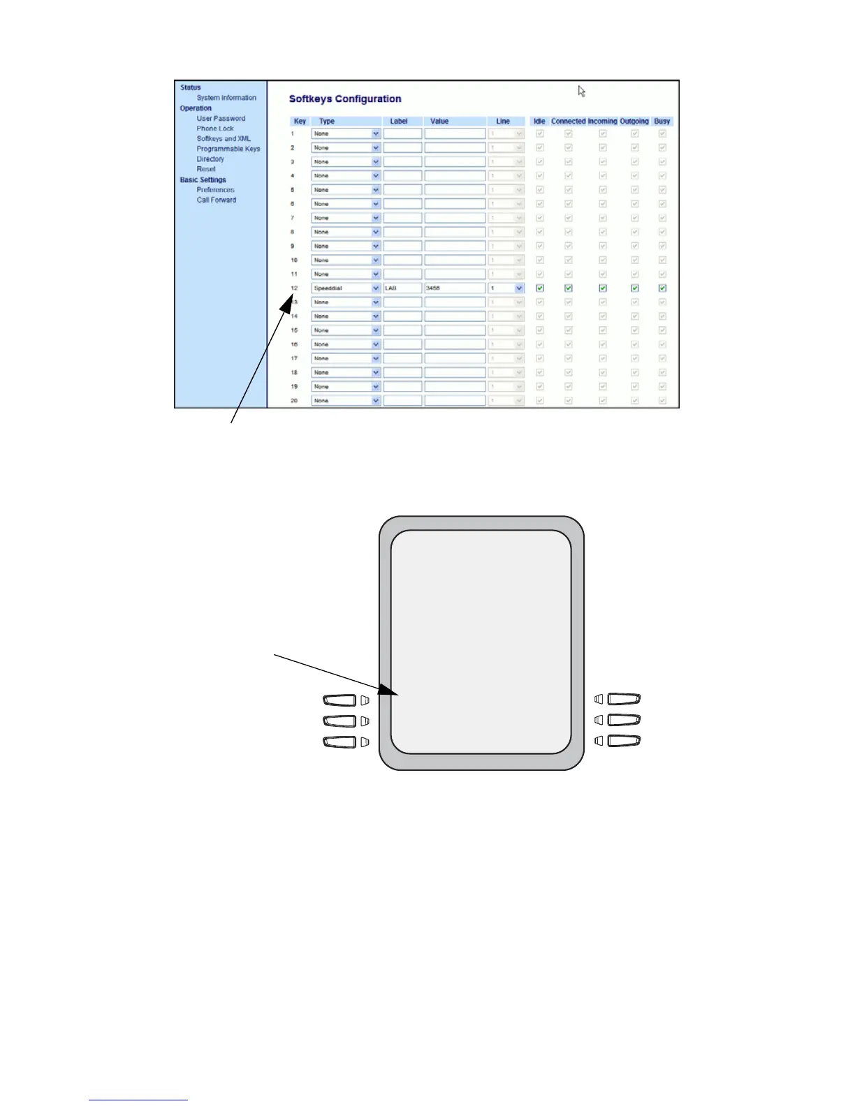The following illustration shows the configuration of Key 12 and how that key