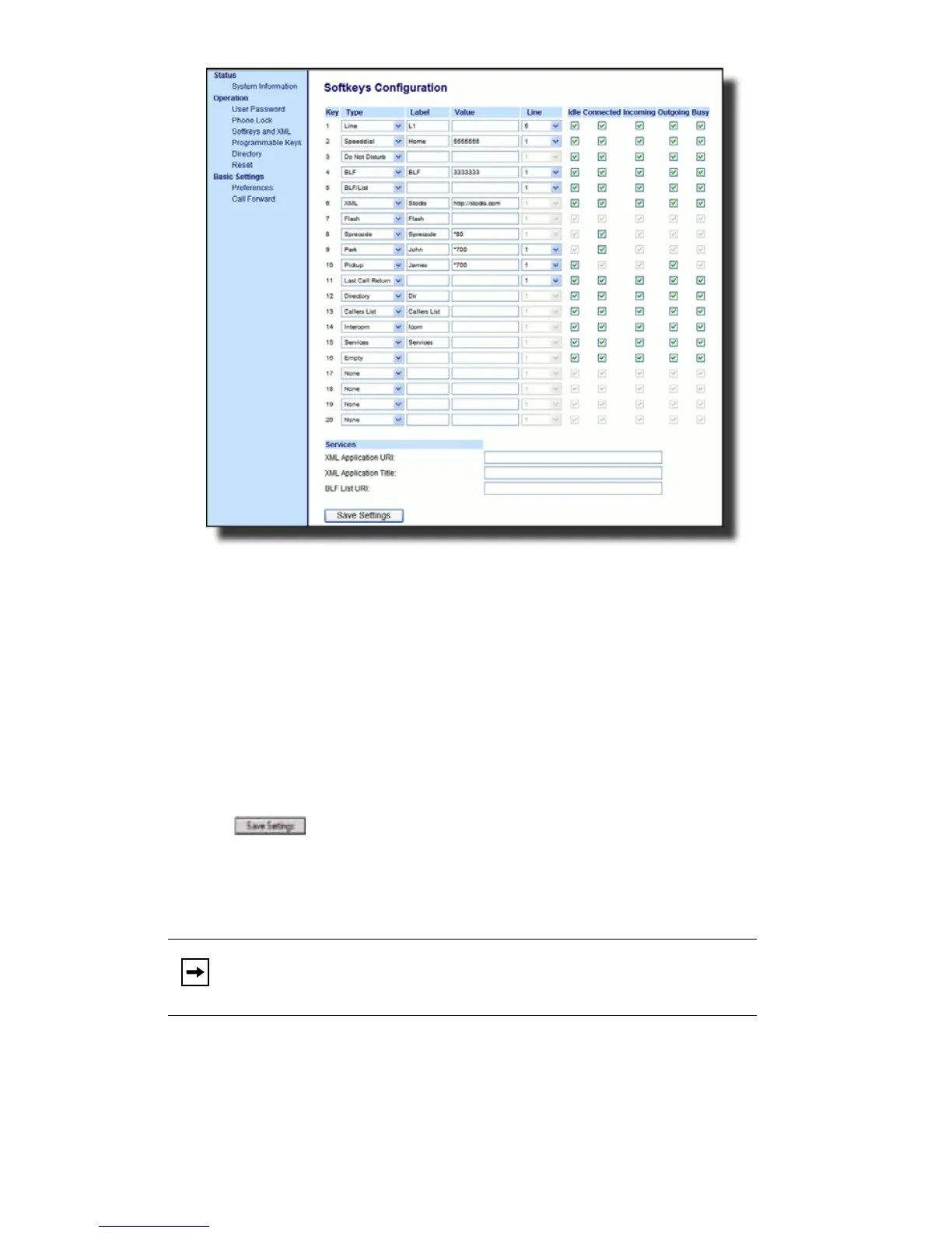 7. If configuring a softkey on the Bottom Keys, in the state fields, check (enable)