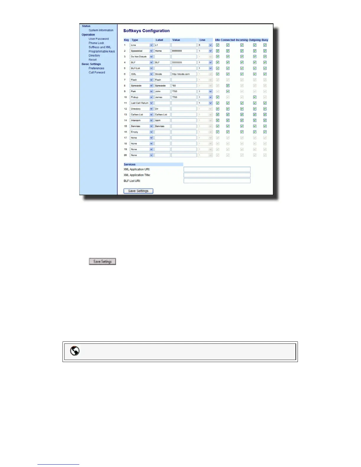 4. If configuring a softkey on the Bottom Keys, in the state fields, check (enable)