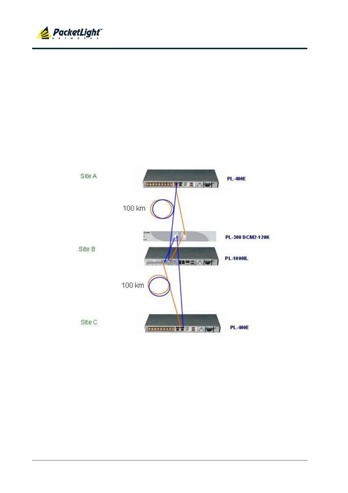 In Site C there is a single PL-400E unit with aggregated eight DWDM channels.