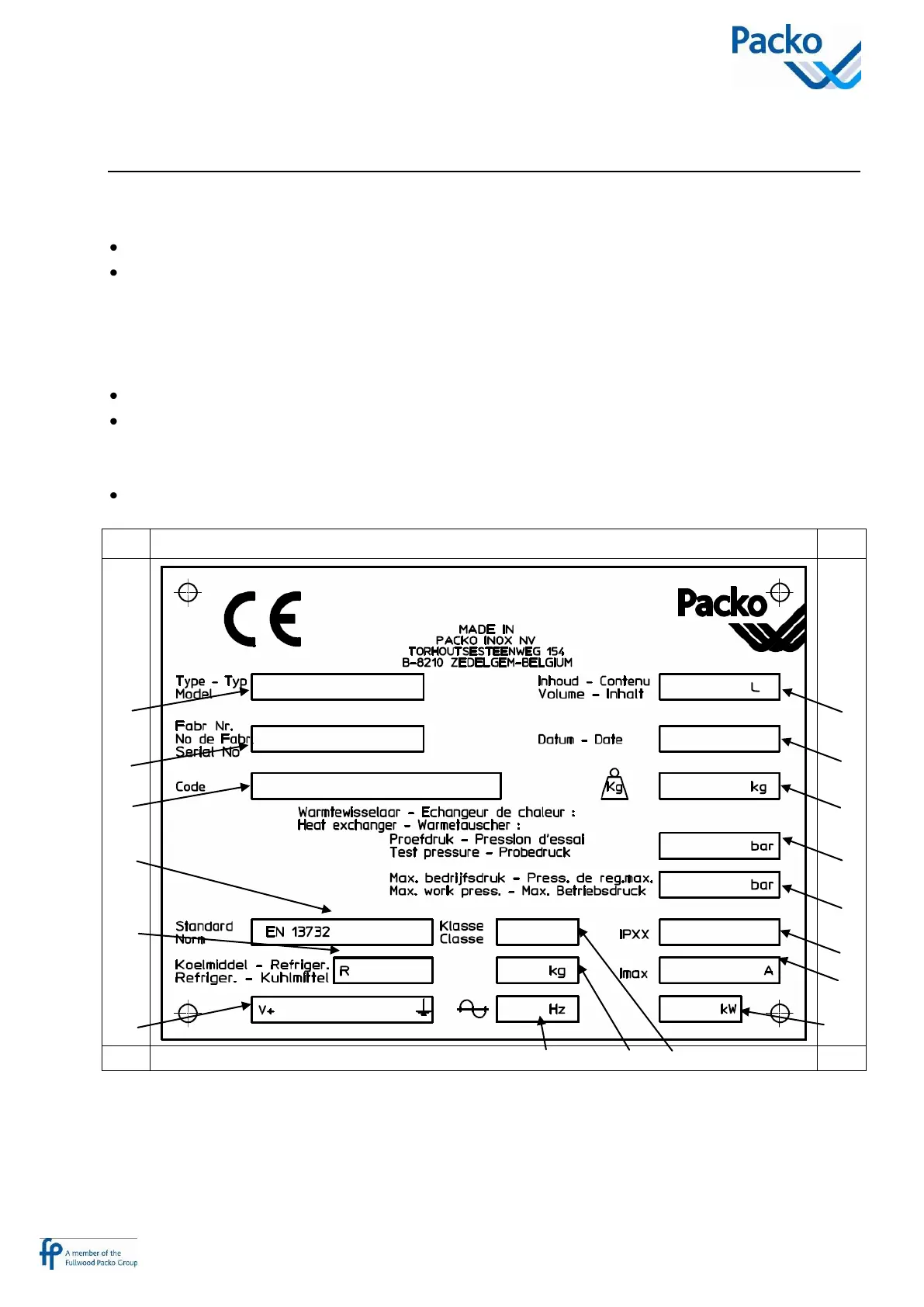 Packo REM/DIB Series - About Your Milk Cooling Tank; General Specifications