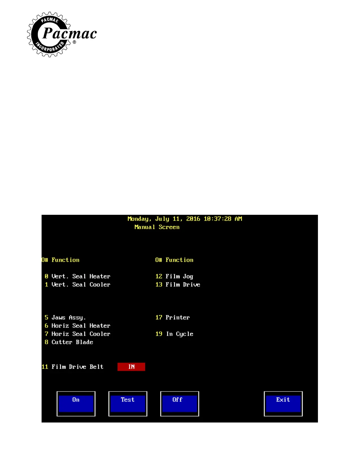 THE MANUAL SCREEN IS USED TO OPERATE THE MACHINE