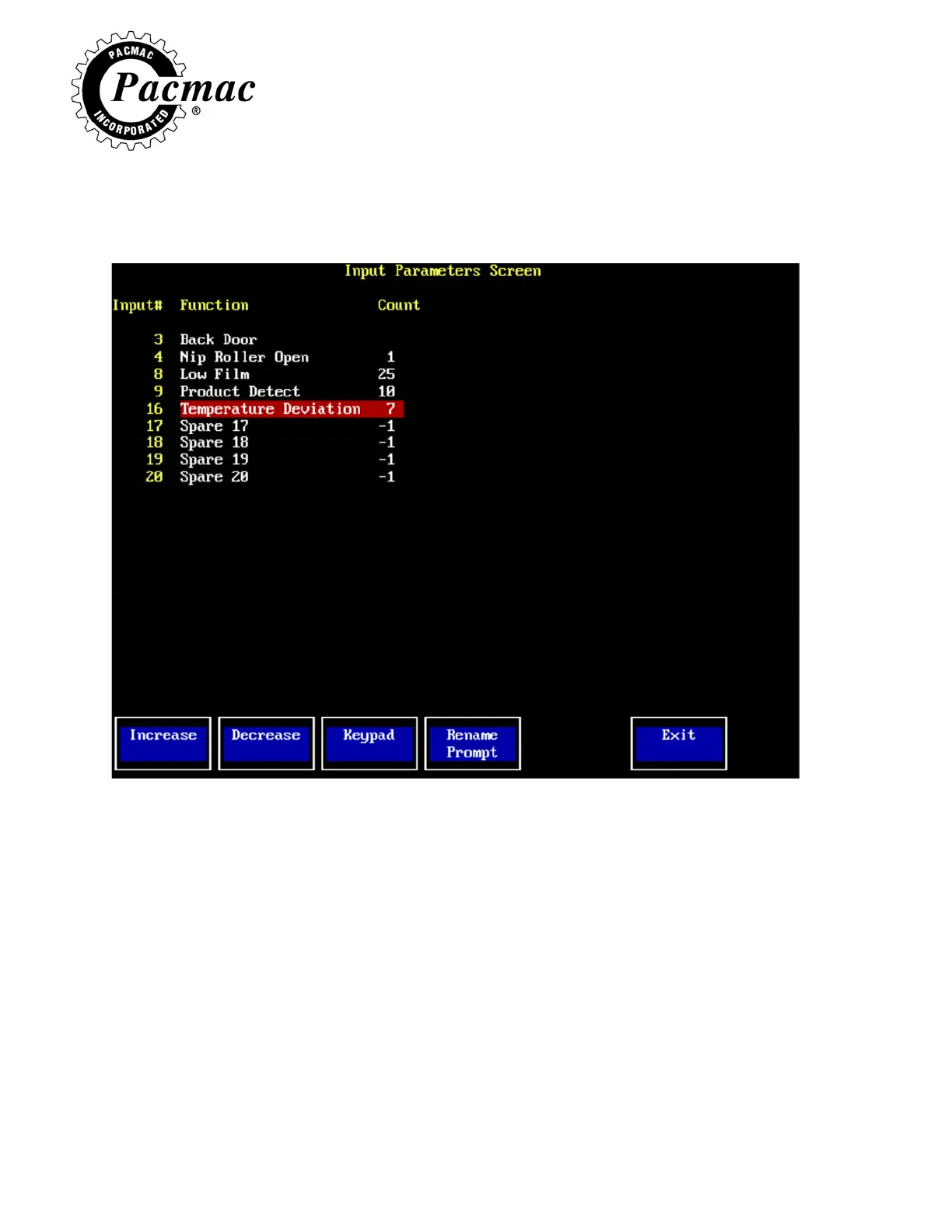 THIS SCREEN ALLOWS THE OPERATOR TO CONFIGURE THE INPUTS