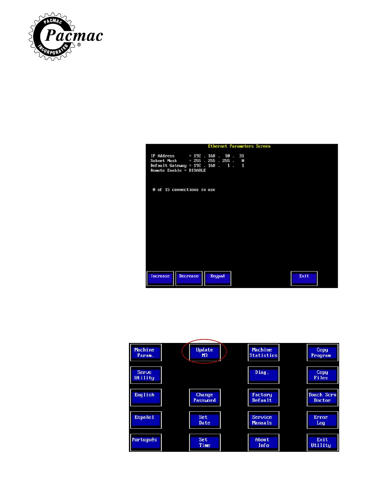 THIS SCREEN ALLOWS YOU TO VIEW THE MACHINE’S ETHERNET