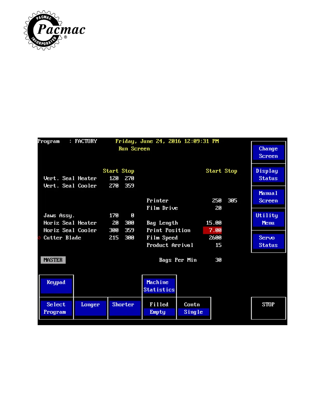 THE RUN SCREEN IS USED TO MONITOR THE SELECTED PROGRAM