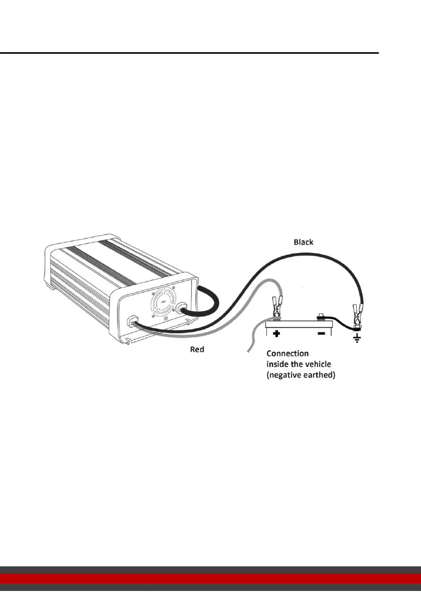 Connect the BLACK line (battery terminal) of the charger to the vehicle body – with sufficient