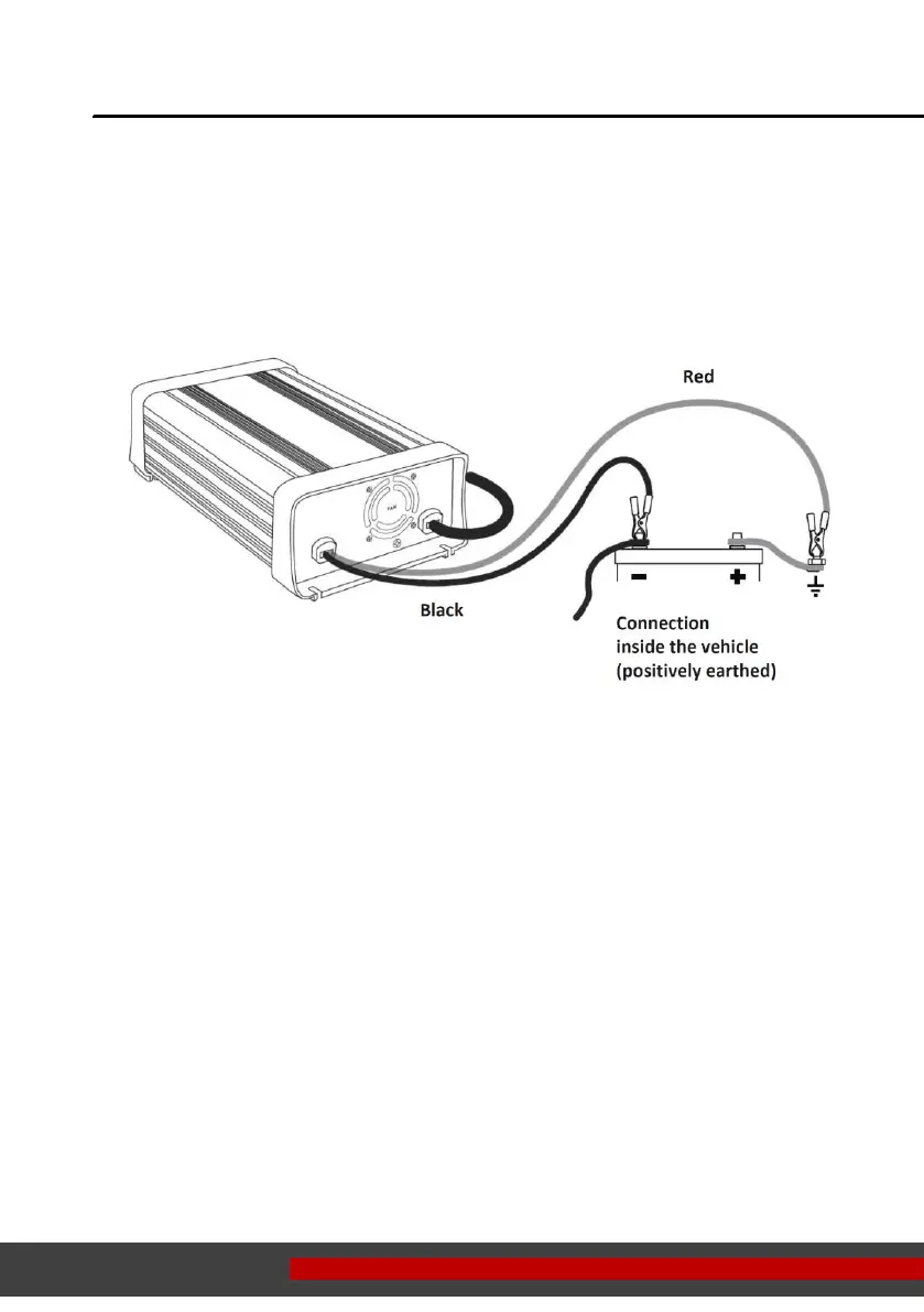 Connect the RED line (battery terminal) of the charger to the vehicle body with sufficient