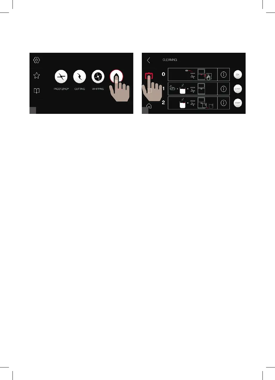 Select “Clean” in the main menu. Select the touchscreen symbol on the left side to