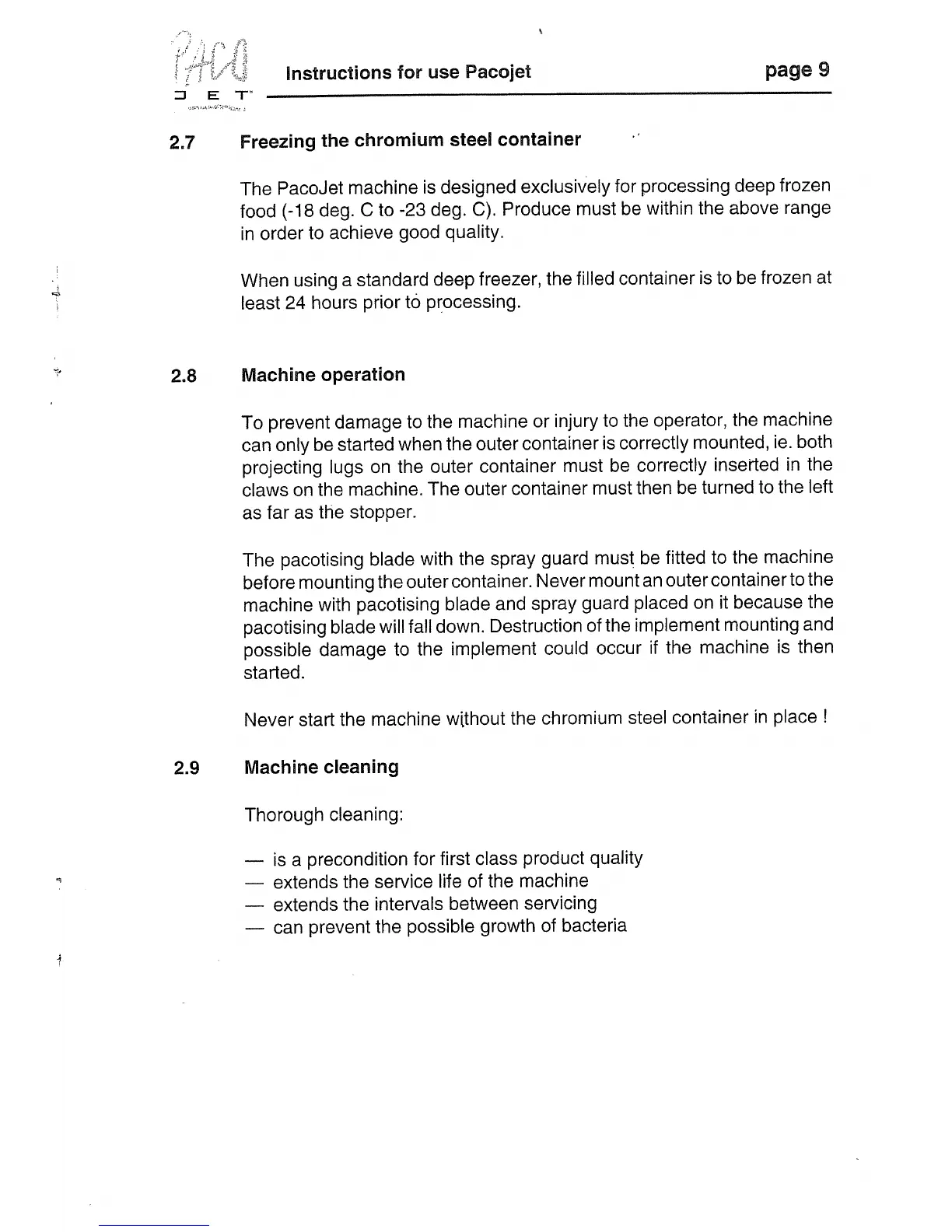 Pacojet PJ1 - Supplied Equipment