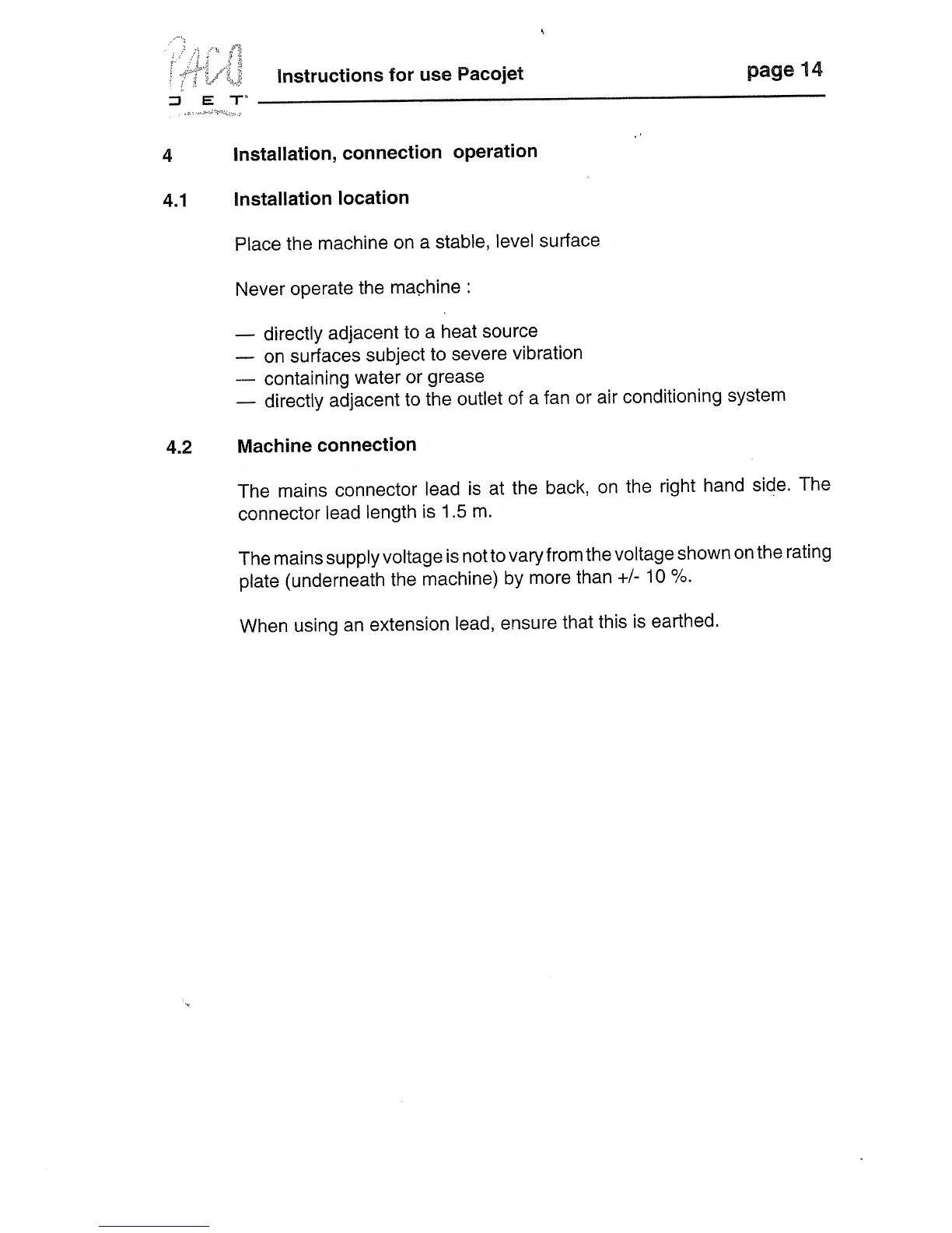 Pacojet PJ1 - PacoJet Operating Instructions; Operating Elements Overview