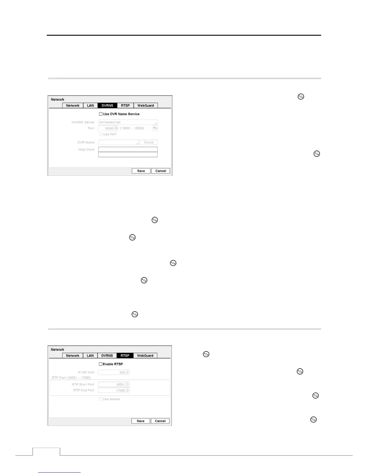 Highlight the box beside Port and press the button. Set the port number of the DVRNS server using the Up and