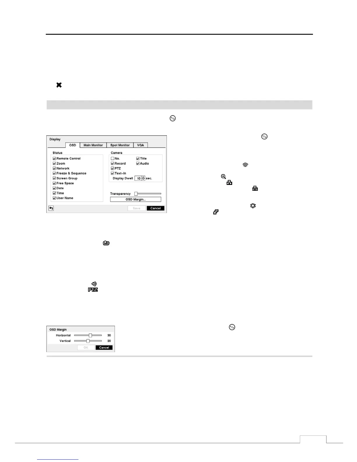 be displayed on the monitor. You can adjust the horizontal and vertical margins