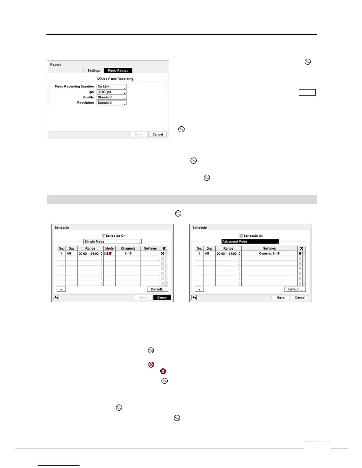 resolution for Panic recording. You can select from: Very High (D1), High (Half D1) and Standard (CIF).