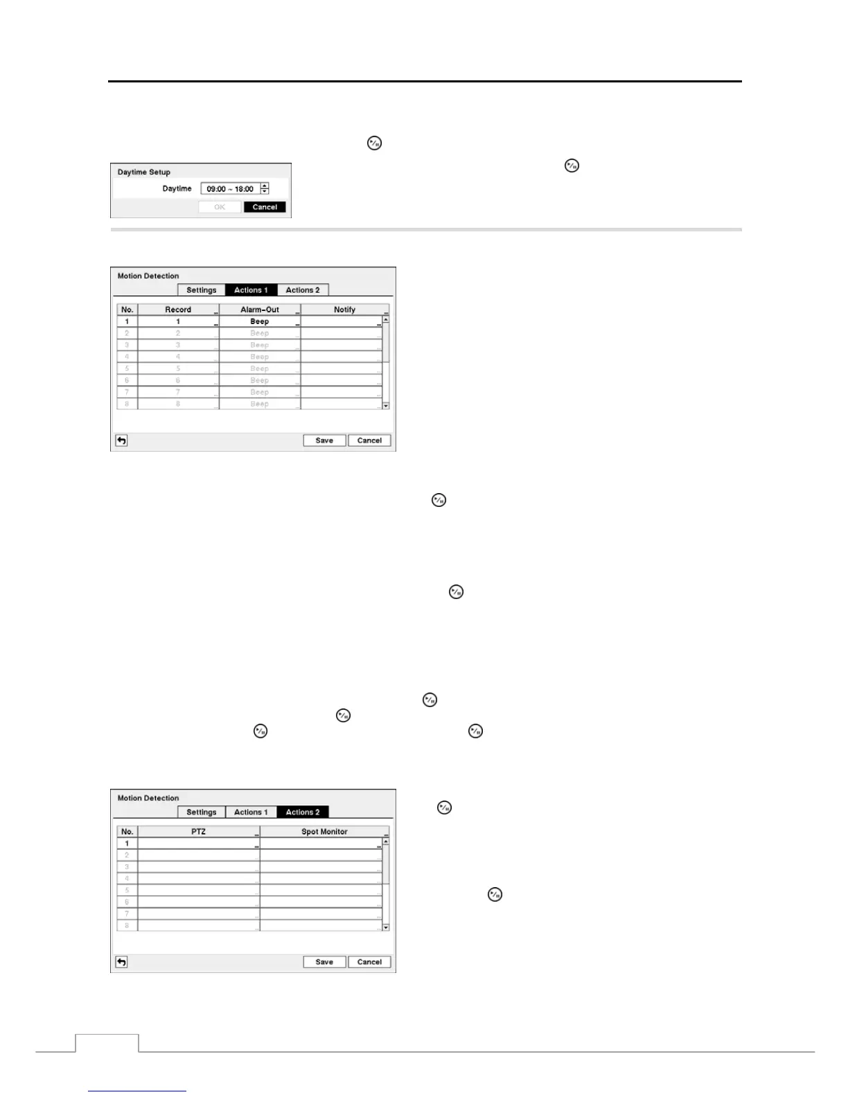 arrow buttons to set the Daytime range. The DVR will consider the remaining