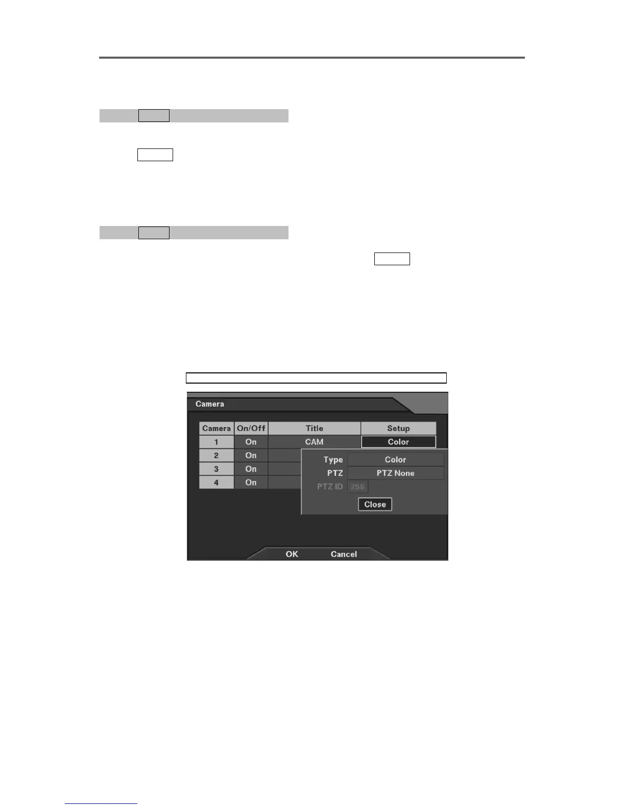 NOTE: If the selected camera is a PTZ camera, set up PTZ type and PTZ ID. Refer to