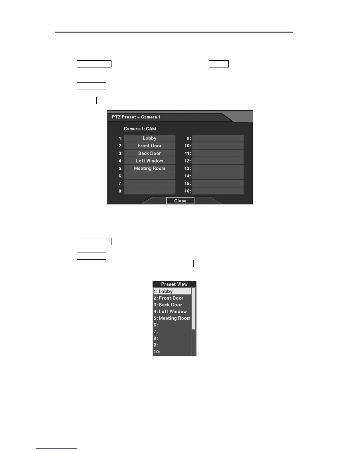 Figure 13 PTZ Preset View Dialog