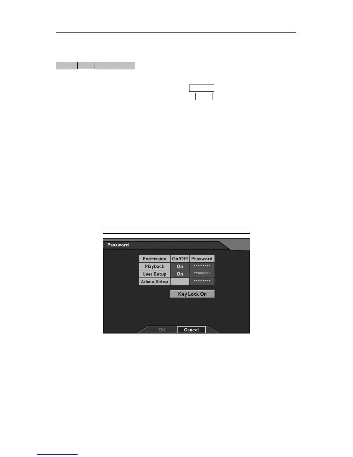 • Playback: A password is required when pressing