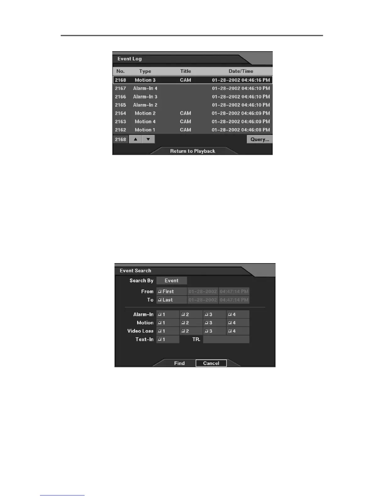 event or camera. First, move to the Search By field and select either Event or Camera.