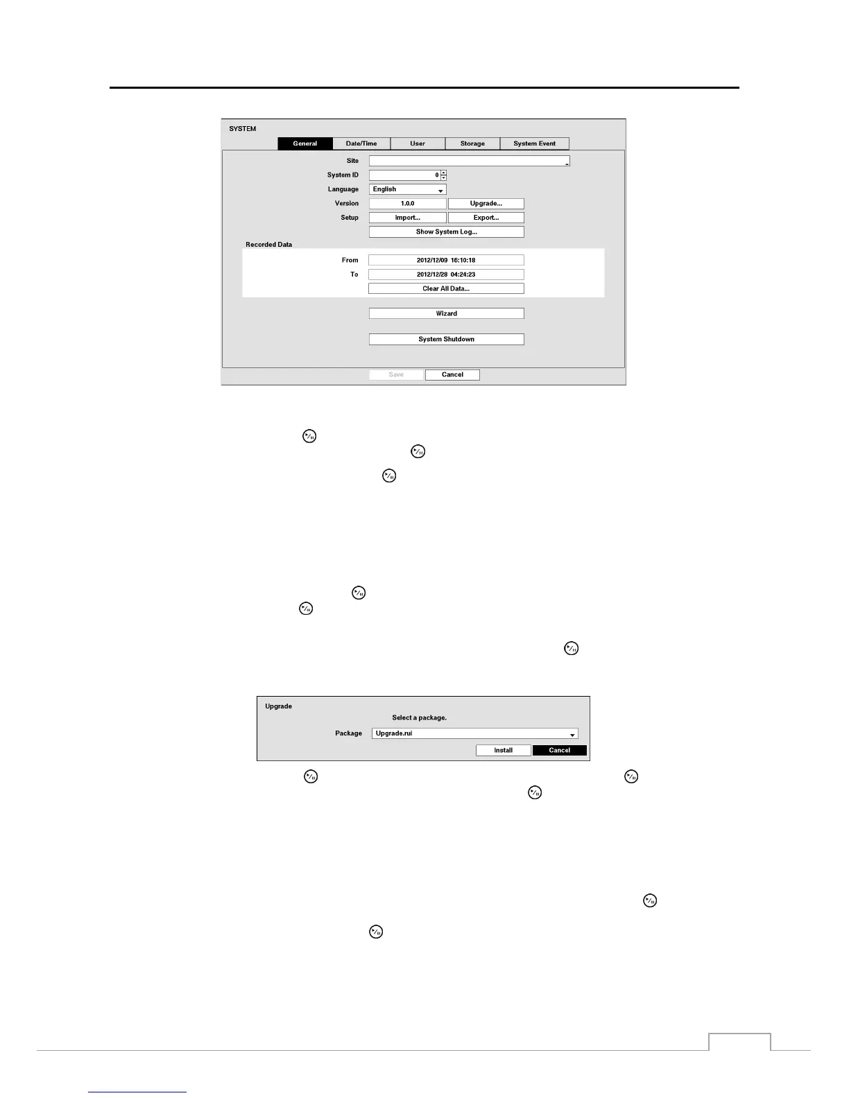 upgrading the software. If the upgrade package file is not installed on the DVR properly, you will get an error message.