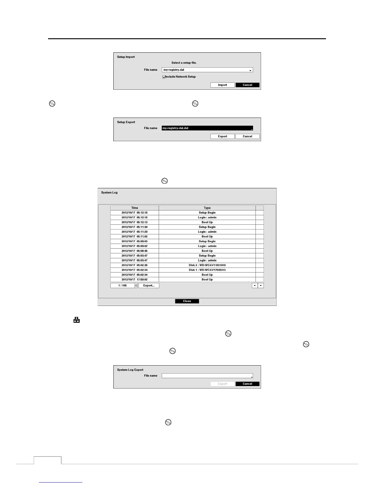 NOTE: Even after changing the DVR settings by importing saved settings, the time-related settings (Date/Time,